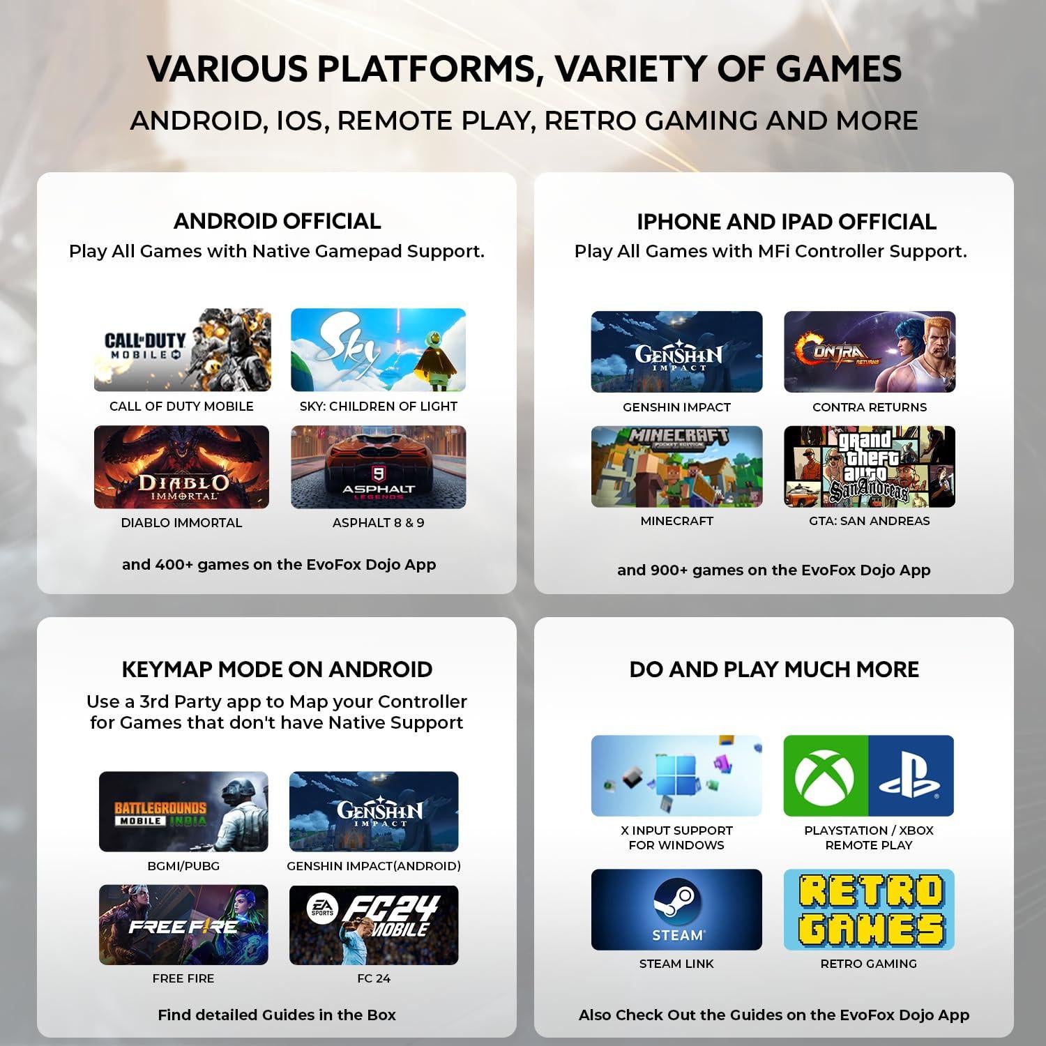 EvoFox Deck Gamepad for iPhone/Android, XBOX, HID - Openbox