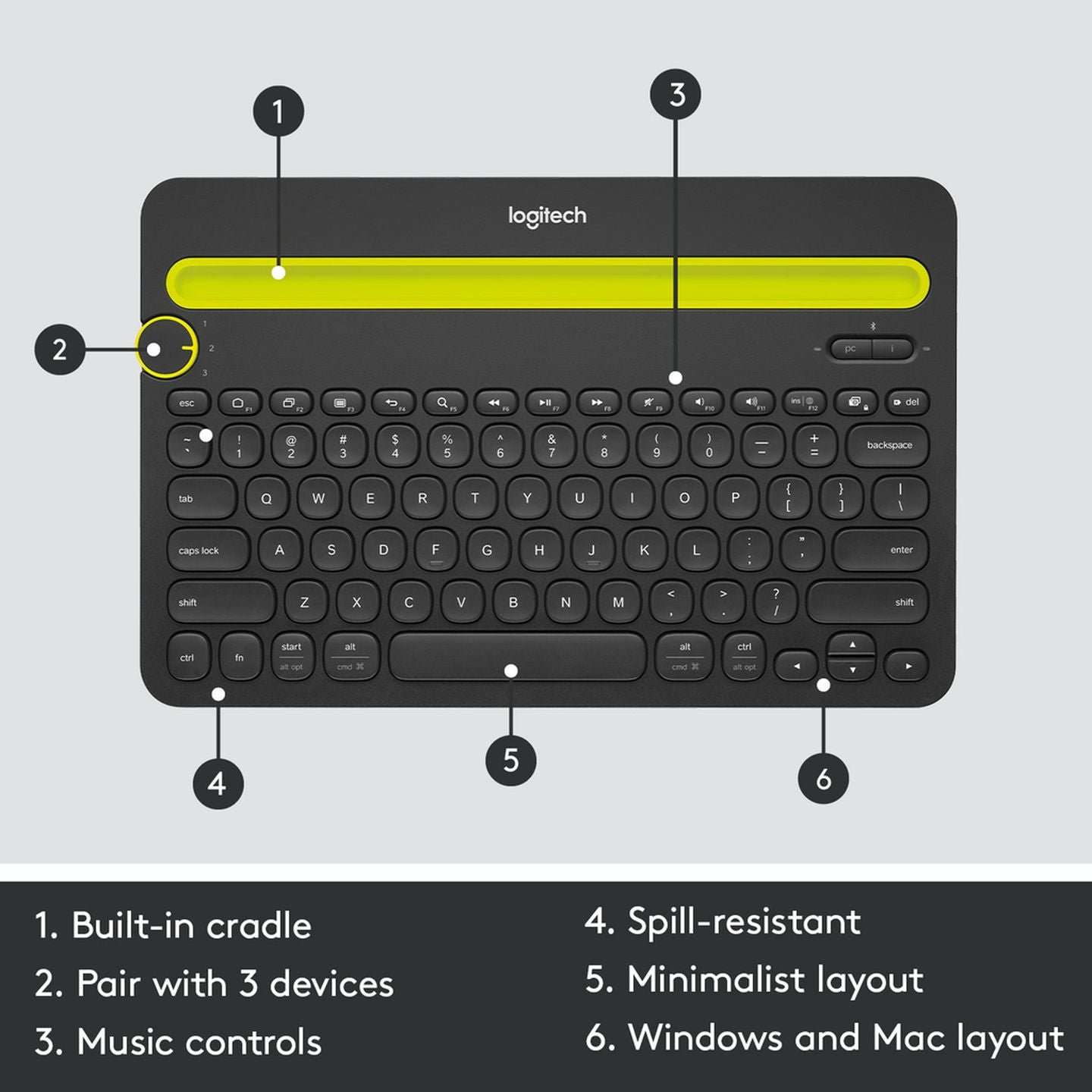 Logitech K480 Wireless Multi-Device Bluetooth Keyboard for PC, Mac, Laptop, Smartphone, Tablet - Openbox